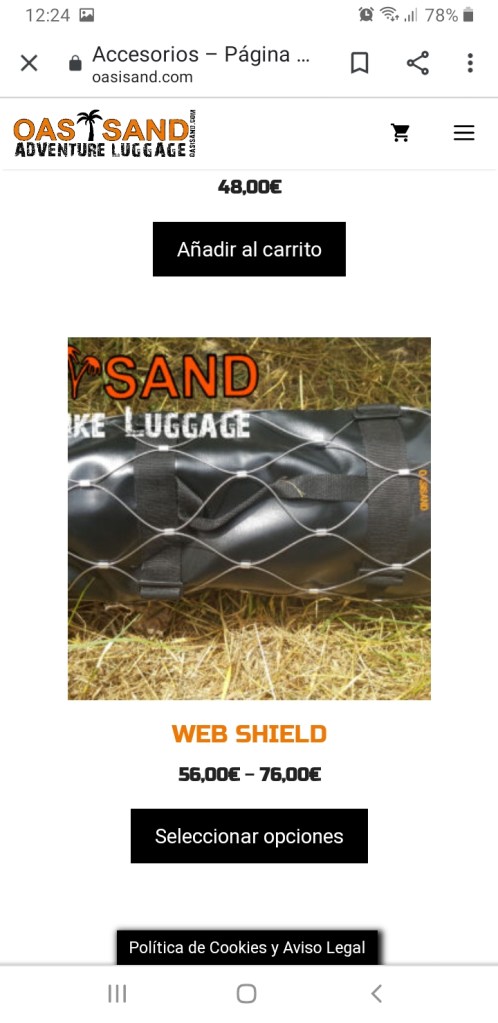 Red metálica de seguridad, también me han preguntado mucho sobre la misma. Contando que no en todos los países te encuentras con personas no interesadas con lo ajeno opté por comprar la red metálica que utilizo para guardar chaqueta, casco e incluso botas cuando quieres dar un paseo y dejas la moto aparcada en la calle, carretera o parque. En mi caso de Oasisand también y que dejas anclada a tu moto. Os dejo una foto sacada de su web.