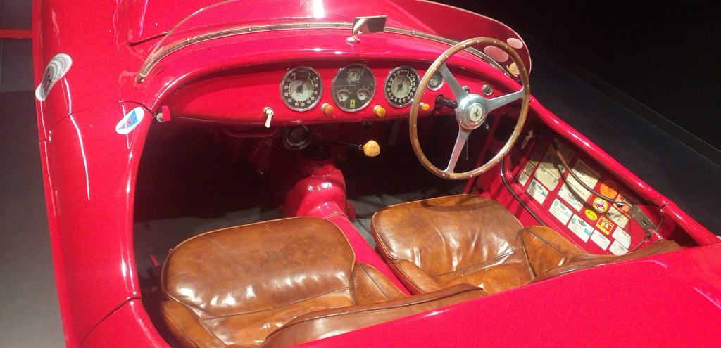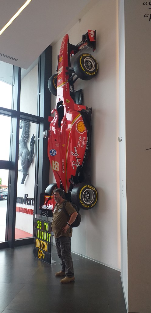 No tenemos demasiado tiempo ya que nuestro segundo objetivo de hoy, se encuentra a pocos kilómetros en Maranello, visita al museo Ferrari. Aquí nos adentramos en el lujo de las carrocerías y motores de la firma italiana. Salas y salas con todos los modelos de su historia, a cada uno le gustan unos coches diferentes a mi me encanta la última sala con todos los modelos de las carreras por años, los diferentes motores y una pared con todos los trofeos. Unos pocos caprichosos del grupo, contratan una vuelta en uno de esos modelos míticos, sus caras son de emoción total!!!