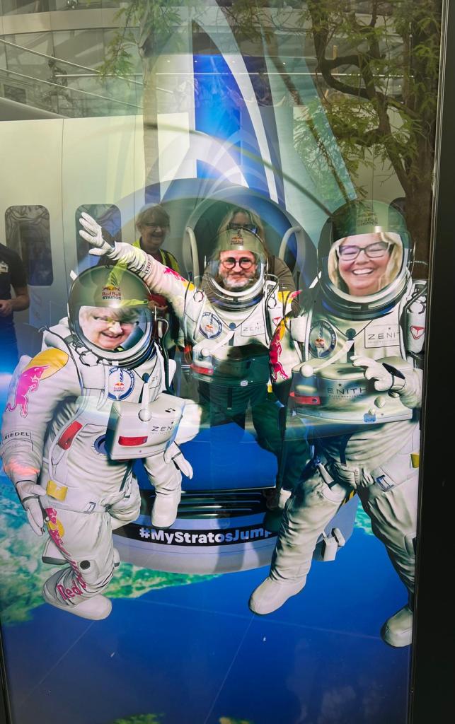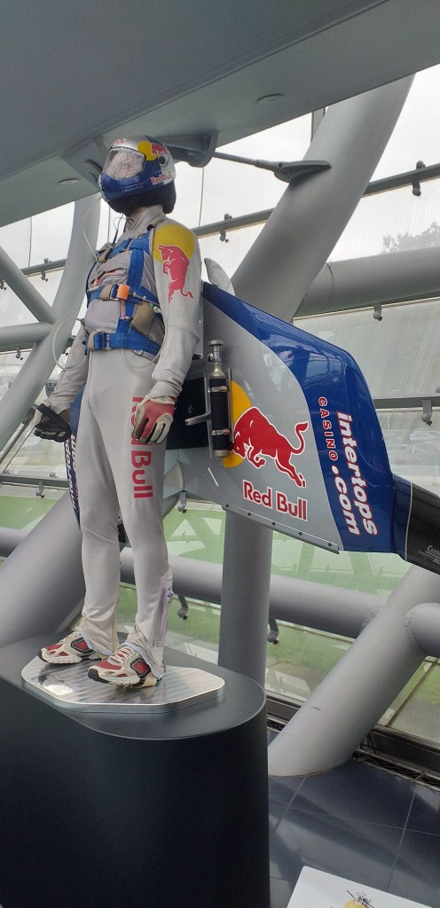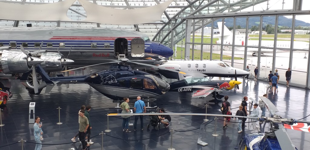 Vamos dirección Salzburg por carreteras de montaña, el paisaje es idílico, coronamos el Gschütt Pass y llegamos a nuestro segundo objetivo de hoy, visitar el Hangar 7 donde RedBull guarda sus juguetitos. Es una innovadora construcción, tipo hangar, donde encontramos todo tipo de artefactos, aviones, coches, simuladores, trajes etc… Es totalmente gratuito y recomendable para todos los que paséis cerca, está a pocos minutos del centro de Salzburg. Carme, Pau y yo nos divertimos un buen rato haciéndonos fotos en el espacio!!!