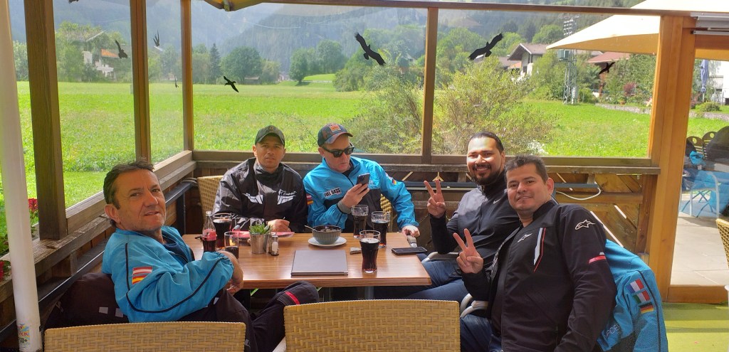 Nuestra primera parada de hoy será en la estación de esquí de Garmisch, aquí se celebra cada año, en el mes de Julio, la BMW Motorrad Days, con la participación de miles de motoristas de toda Europa con muchas actividades, carpas, talleres, en definitiva, tres días de inmersión BMW. Nos paramos para tomar un café en este pueblo 100% alpino y seguimos ruta…