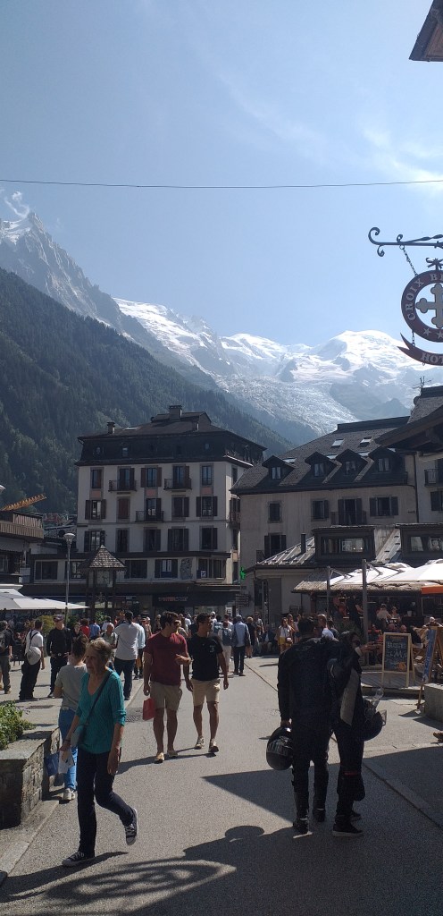 Un poco antes de entrar en Francia, pasamos por el Col de la Forclaz y en breve ya nos encontramos con el majestuoso Montblanc. Hemos parado a comer en Chamonix y con tiempo de recorrer un poco el centro, siempre con ese ambiente alpino y montañero que tanto me gusta.