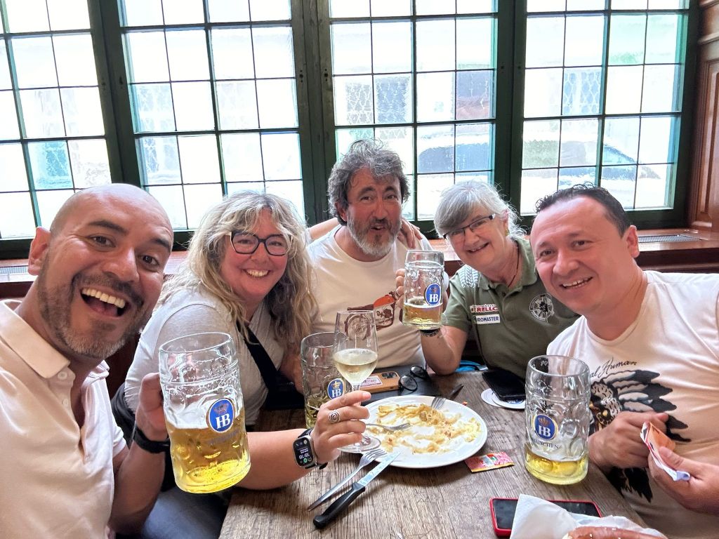 Por la tarde visita guiada por la zona más antigua de la ciudad acabando con el carillón de la torre del ayuntamiento que es una cucada. Unas cervezas y salchichas en la cervecería Hofbräuhaus, en un singular edificio del siglo XVI de tres plantas, con cientos de mesas, un grupo que tocaba en directo y una locura…hemos salido pero que muy contentos!!!!