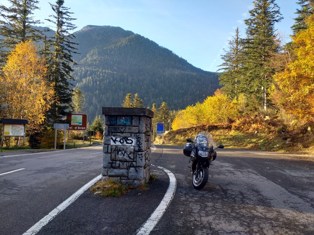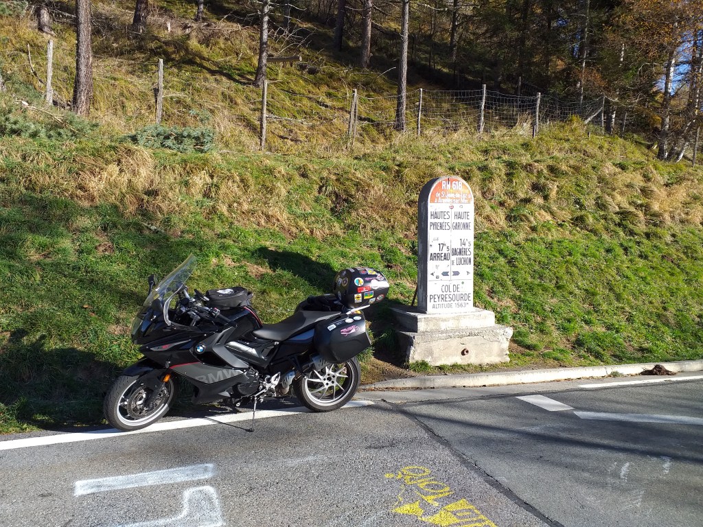 La carretera está mojada y en las partes no soleadas tengo que ir con cuidado, puede estar helada. Paso el Col du Portillón, no me he cruzado con ningún vehículo.
