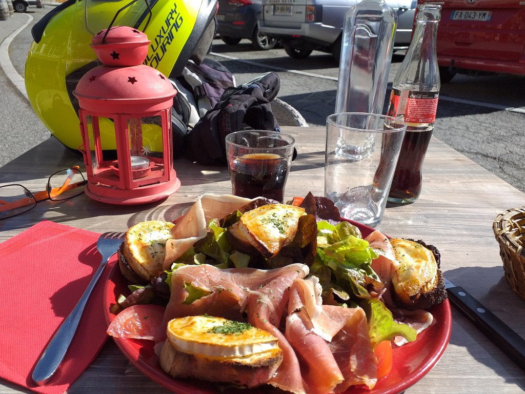 Como podéis ver, es una maravilla. Os lo recomiendo de verdad, vale la pena montar una excursión para realizar esta visita. Ya en el teleférico de bajada y con el estómago quejándose, me parece ver unas terrazas encaradas al sol que están abiertas. Como yo vengo de Cataluña, donde desde hace unas semanas están los restaurantes cerrados, ni me lo pienso y me espachurro en una silla y espero que me traigan una cocacola helada y una ensalada de esas tan buenas que preparan en Francia.