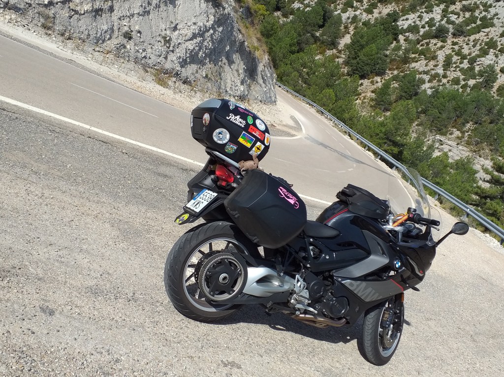 La moto limpia y revisada, mis botas brillantes, mi traje nuevo precioso y la moto cargada a tope. Todo ordenado para poder encontrar cualquier cosa rápidamente y con una libretita en la que pone que es lo que hay en cada maleta o bolsa.