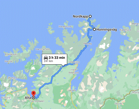 Hemos hablado con José Mijares que tiene su negocio a pocos kilómetros de Nordkapp y vamos a conocerlo en persona ya que me ha ayudado mucho en responderme mil preguntas cuando preparaba el viaje. El viento es terrible pero llegamos bien a Honningsvag. José además de su tienda de cosas de Navidad, Artico Christmas House, tenía el Ice Bar que ha tenido que desmontar por motivos de falta de negocio por el Covid. Ahora, como es un emprendedor está ampliando su tienda y montando una mucho mas grande y que será preciosa. Su mujer, Gloria, que tiene un negocio de pasteles Nordkapp Cake, nos ha dejado unos bizcochos con merengue y limón que son una pasada!!! Después de charlar un ratito, le compramos unos recuerdos y tomamos la carretera dirección a Alta.