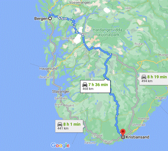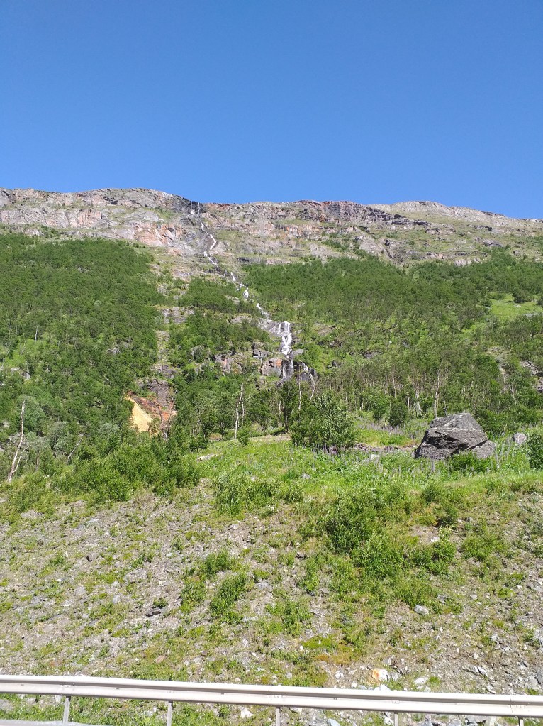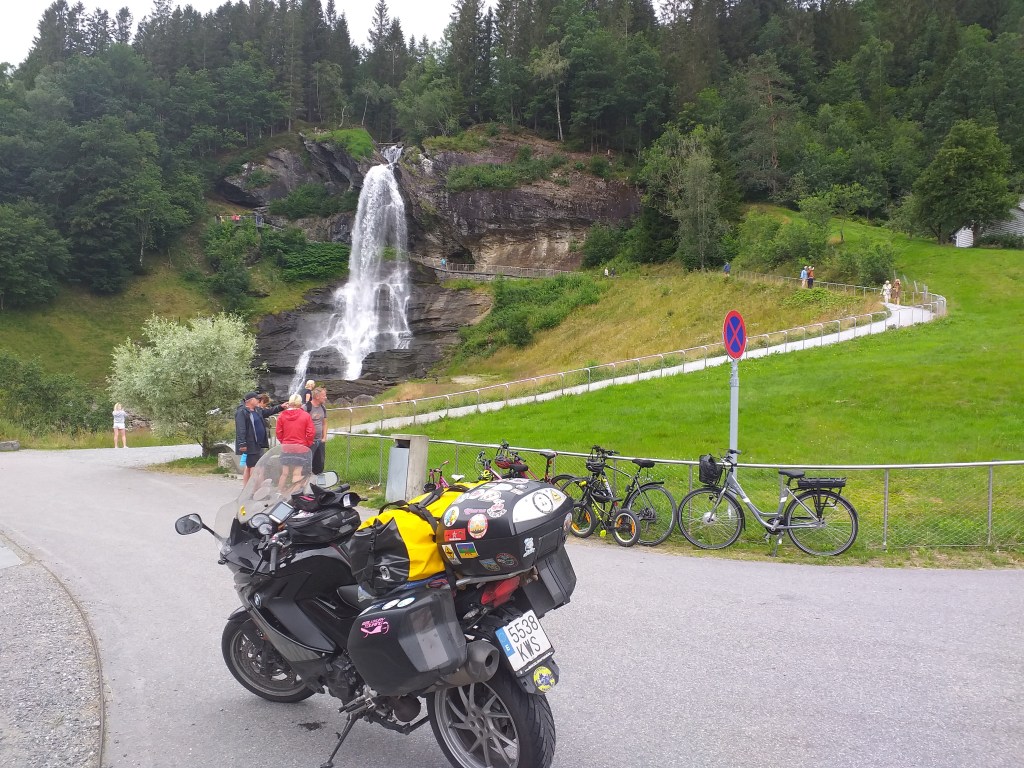 Hoy tocan muchos Kms, circulamos por varias carreteras y seguimos en la misma línea de paisajes entre fiordos y grandes alturas. La mayoría de tramos con 80 Km/h, comentaros que en Noruega el exceso de velocidad se paga con multa, 3 días de cárcel y expulsión del país, así que no es broma!!!