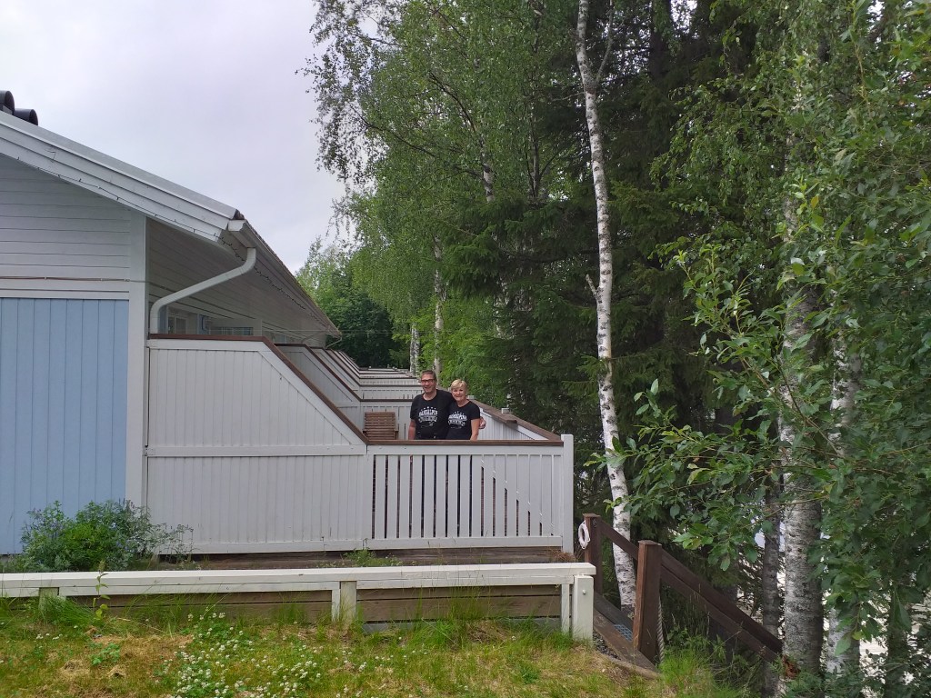 Hemos reservado casita en Rovaniemi y cuando llegamos nos sorprende gratamente, es una casa de madera, totalmente nueva y muy bien decorada con sauna y un terrazón que da a un lago con escaleras para bajar ohohohohohohohoh. Hacemos una lavadora para llevarnos toda la ropa limpia.