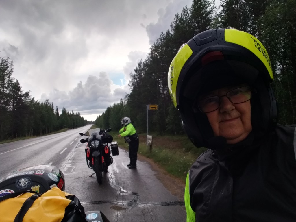Llega la hora de empezar ruta, arrancamos motos y gasssss. La ruta es lenta, muchos camiones y ya estamos en carreteras de un solo carril, muchas rectas y poco a poco vamos encontrando lagos y mas lagos, leo en internet que Finlandia tiene 100.000 lagos.