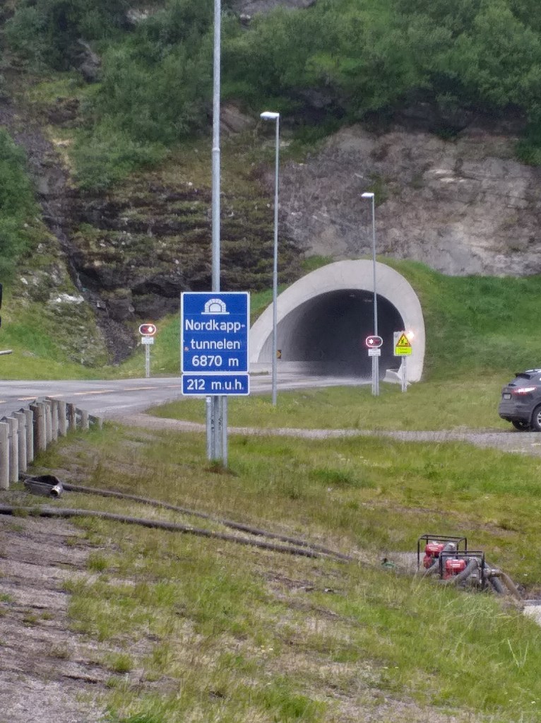 Y de repente llegamos al túnel que te lleva a la isla donde está Nordkapp, es un poco terrorífico y agradezco que tengo a Mirelle cerca. Es bastante oscuro y empieza a bajar y bajar hasta el centro de la tierra y luego a subir y subir hasta que vuelves a salir al exterior, no me quiero imaginar que te quedas tirado en medio del túnel y vas solo, no nos cruzamos a nadie en los 6 kilómetros!!!