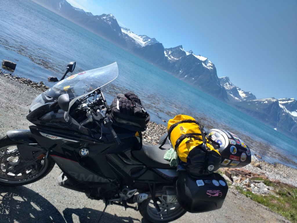 Replanteamos el viaje, Mireille sigue preocupada por tener que perder un día en recoger el monedero, ya que está en las islas del norte de las Lofoten, hasta me plantea que sigamos separadas, LOCA!!!!! Que yo soy del Moto Grup Barcelona donde nuestro lema es «nunca rodarás solo» . Así que mañana volveremos a subir las Lofoten y haremos parte de las islas del norte para recoger su monedero.