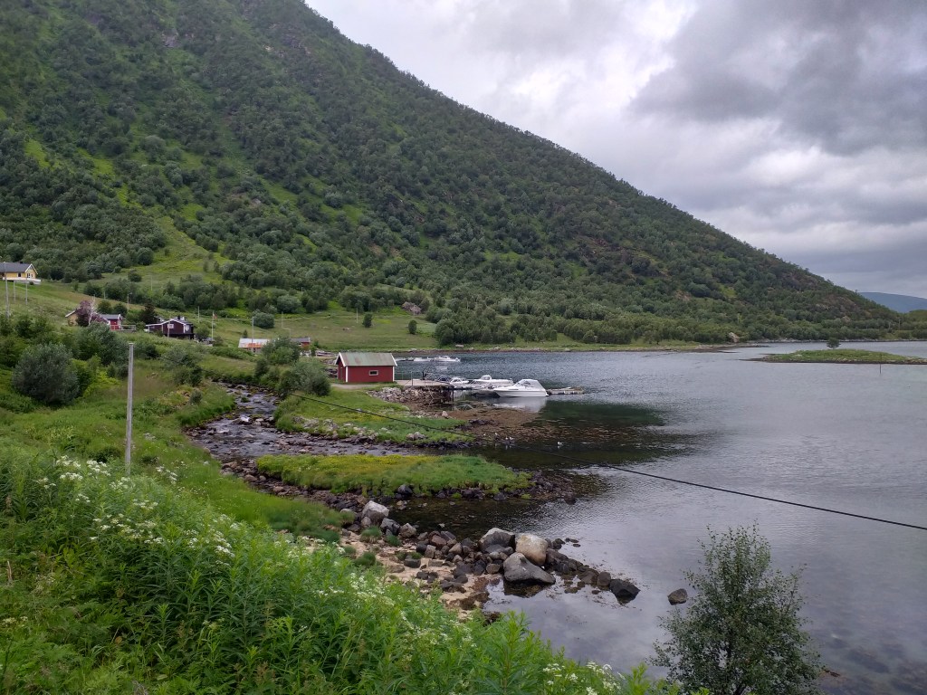 Bien alimentadas seguimos ruta, el tiempo va empeorando y las nubes cada vez mas cerradas y el viento empieza a soplar con ganas. Nada nos quita la ilusión y llegamos a nuestro primer fiordo, bien al norte!!!