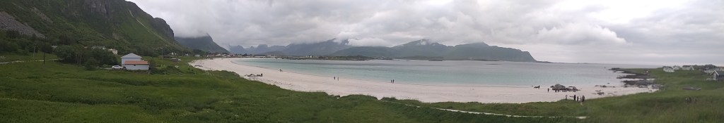 Y llegamos al final de las mismas y nos alojamos en un maravilloso B&B en las afueras de un pequeño pueblo llamado Flakstad. Está en la mejor situación, delante de una preciosa playa y desde la ventana de nuestro cuarto se ve la mejor vista. La dueña es una brasileña obsesionada por la limpieza y la logística para entrar en la casa sin un grano de arena es complicada, contando que llegábamos con lluvia, con los trajes de agua puestos y mil trastos!!!
